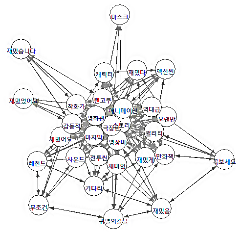 지난 포스팅에 이어서 귀멸의 칼날 네이버 영화평에 대한 의미망 분석을 추가해보겠습니다. 관련 내용은 지난 포스팅에서 언급한 바 있습니다만, 추가로 동시 출현 네트워크 분석을 시도해보겠습니다.